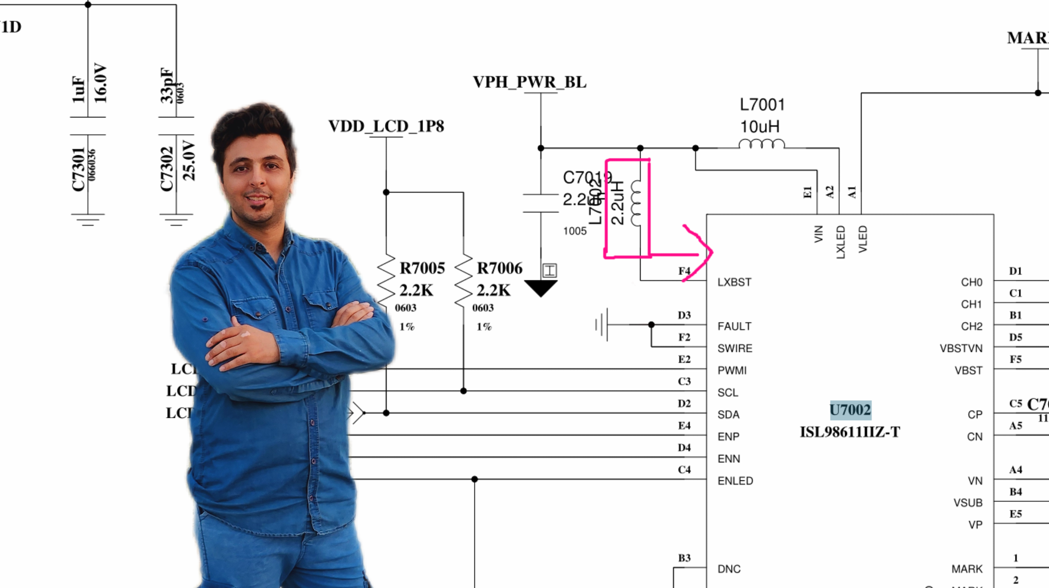- شکل زیر سلف بوست کانورتر را نمایش میدهد و این ولتاژ توسط پایه E5 مسیر (VSP) از آیسی به عنوان ولتاژ 5V خارج میگردد.